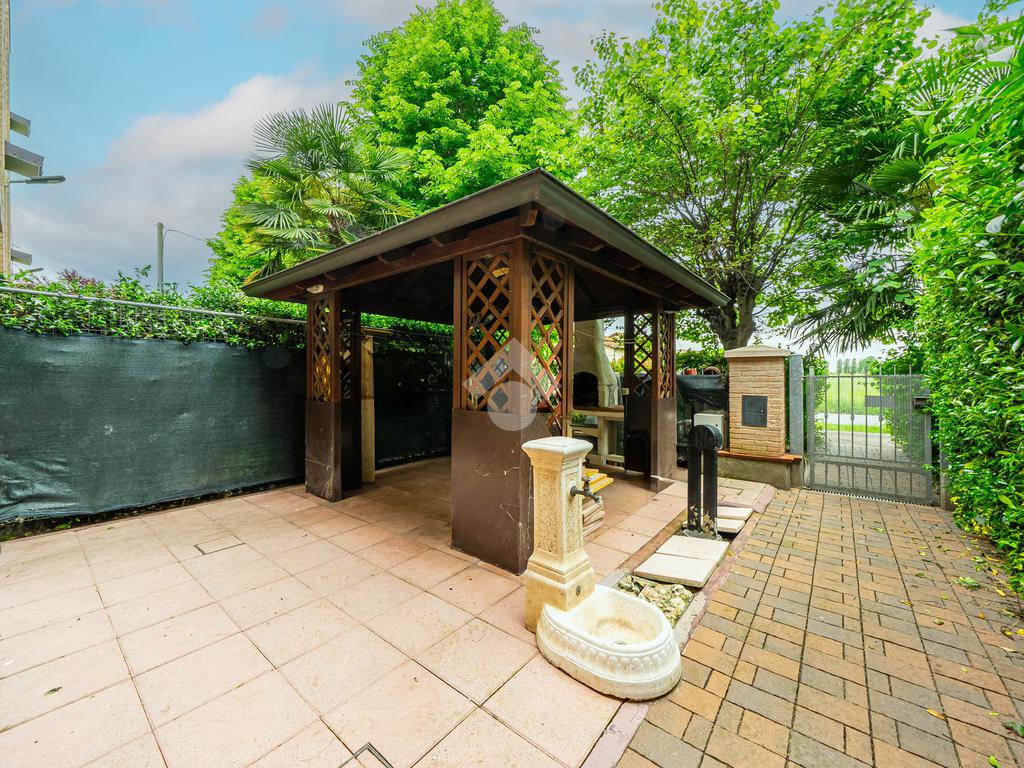 Piano terra: varcando l’ingresso indipendente si viene accolti da un ambiente pratico e ben strutturato. Troviamo un bagno/lavanderia, ideale come spazio di servizio, e l’accesso diretto al garage doppio in larghezza, comodo per due auto e per riporre attrezzature o biciclette. Il giardino privato, impreziosito da un gazebo dove trascorrere momenti di relax all’aperto.