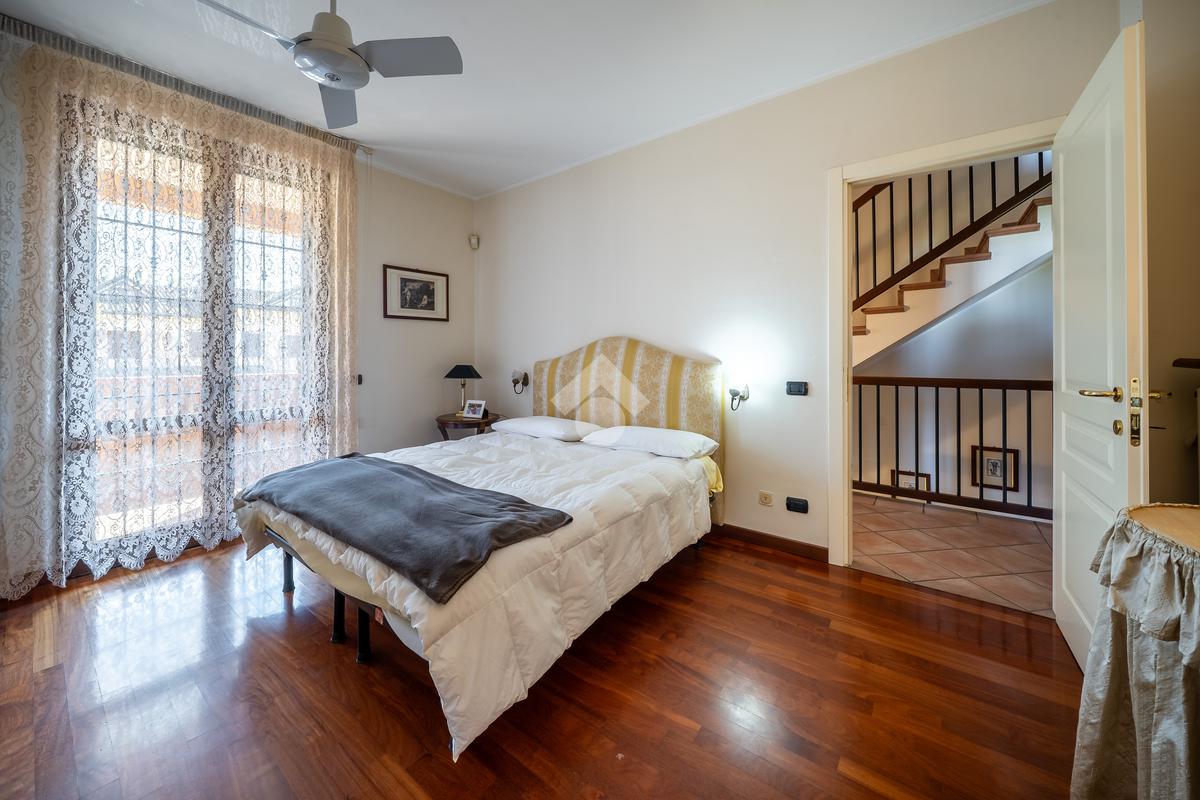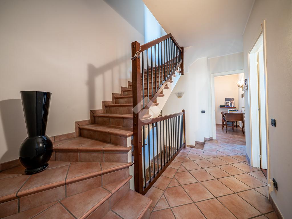 Salendo al primo piano, troviamo la zona notte: tre camere da letto pensate per il comfort di tutta la famiglia, tra cui una spaziosa matrimoniale con balcone privato, perfetto per iniziare la giornata con un momento di quiete. Il piano è servito da un secondo bagno con vasca.
