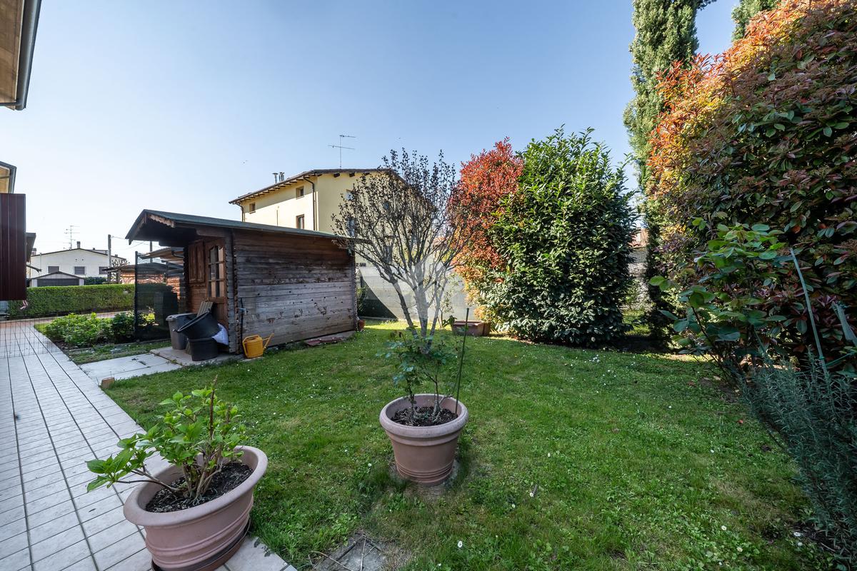 All’esterno, il vero valore aggiunto: un ampio giardino piantumato su tre lati, ideale per vivere momenti all’aperto, organizzare cene estive o semplicemente godersi la natura in totale privacy.